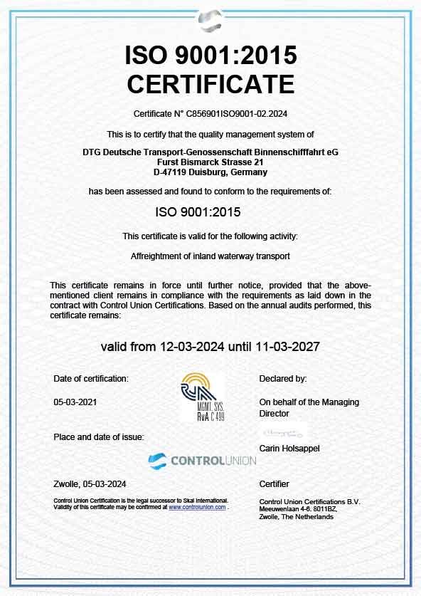 this way, DTG is ISO 9001:2015 certified through Control Union Certifications.