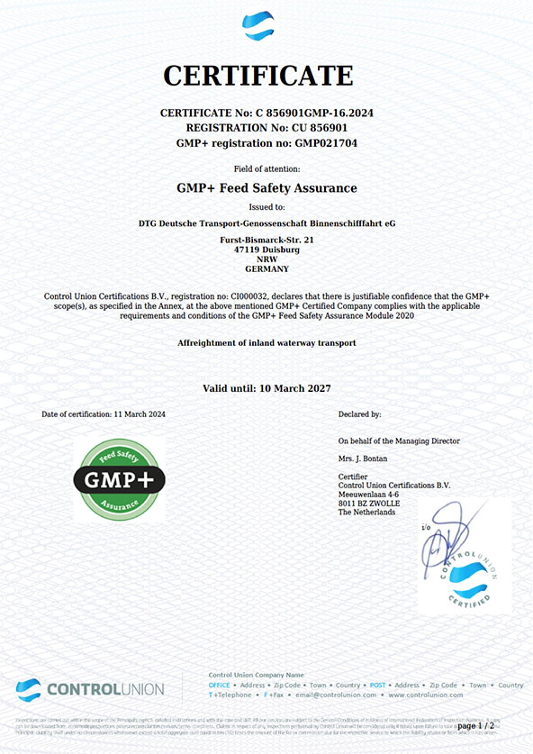foodstuffs, premixes and mixed feed on inland waterways: DTG and the inland
