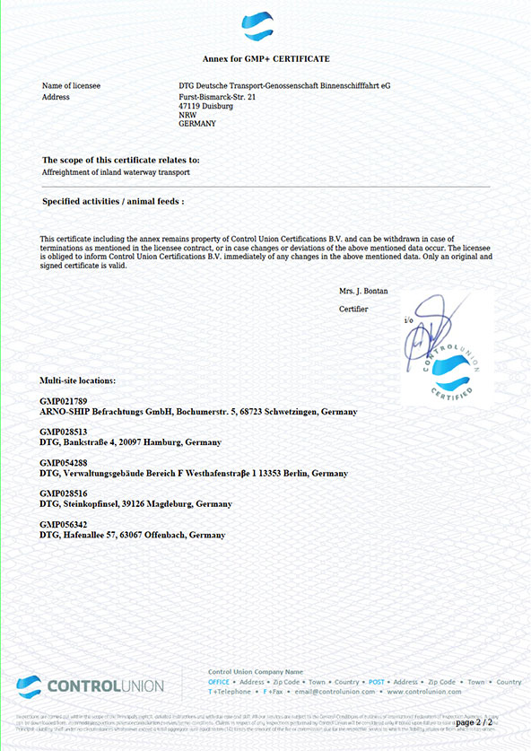 accordance with the hygiene standard GMP+ B4 or B4.3. DTG and its associated
